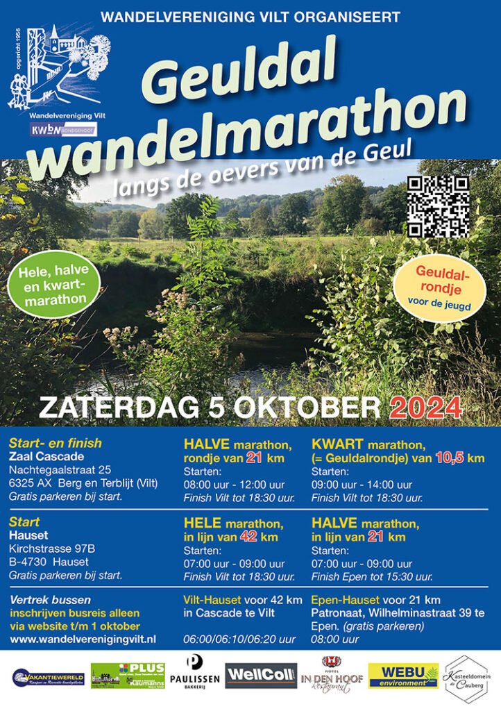 - 4 oktober; Geuldalwandelmarathon (hele van 42 km. of de halve van 21 km. met en zonder busvervoer) en Geuldalrondje van 21 km. of 10,5 km.